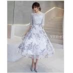 フラワーレースフレアワンピース パーティードレス キャバドレス ナイトドレス 結婚式 キャバクラ 大きいサイズ