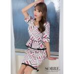 幾何プリントペプラムワンピース パーティードレス キャバドレス ナイトドレス 結婚式 キャバクラ 大きいサイズ