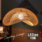 ラタン天吊りランプ LED電球付属 アジアン 美しいフォルムと天然ラタンがおしゃれなペンダントライト カウボーイランプ W40cm 【54542】