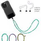 ストラップチェーン カラビナ付き 3way ビーズ 全機種対応 斜め掛け ショルダーストラップ マルチ汎用 グリーン フローラル
