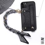 スカーフ付き ショートストライプ 千鳥格子 バッグハンドル 持ち手 紐 チェーン ハンドストラップ スマホケース用 リボン 付け替え 単品 レディース 手首