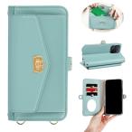 OPPO Reno11 A スマホケース(グリーン)斜めがけ スマホショルダー 手帳型 ストラップ付き くすみカラー