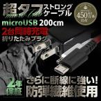 microUSB ケーブル AC充電器 一体型 急速充電対応 超タフ ストロング ケーブル スマホ アンドロイド 2m 200cm 2年保証