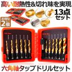 爆買 ドリルビット タップドリルビット 六角軸 ネジ切り 13点セット 面取りタップ 穴あけ タップセット HSS高速度鋼 スパイラル ドリ