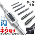 爆買 ネジ切りタップ 3セット ネジ穴 ネジ山修復 タップ7本 ネジ穴開け 穴あけ工具 ねじ切り ハンドル 付け替え 簡単 手動 DIY工具