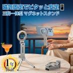 MagSafe対応 磁気スマホスタンド クリップ式 折りたたみ 360度回転 1/4カメラネジ穴付き 旅行用 机固定 コンパクト 三脚対応 シルバー グレー