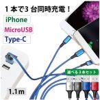 3in1 lightning 充電ケーブル 急速充電 1.1m 3台同時 3本セット 充電 USB タイプC iPhone microUSB type-C iPhone/iPad/Android/MacBook/タブレット 送料無料