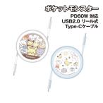 送料無料 ポケットモンスター ポケピース PD60W 対応 USB2.0 リール式 Type-Cケーブル POKE-955 /ブラウン ホワイト