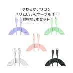 60W急速充電対応 やわらかシリコン スリムUSBケーブル USB TYPE-C to C 1m 5色セット