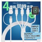 4in1 usb充電ケーブル chafon 充電器 ライトニング iphoneケーブル WA009 USB C A to iWatch 急速充電 同時充電 アップルウォッチ用