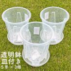 5号 クリアポット 底皿付き 3個セット 植木鉢 根の成長が見える クリア 透明 プラスチック スリット鉢 透水性 通気性 観葉植物