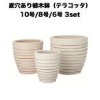 テラコッタ植木鉢 3鉢セット 10号 8号 6号 底穴あり イーシリーズ E-26W 白土焼付 es-e26w3se おしゃれ 素焼き鉢 大型 屋外