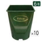 6号プラスチック角鉢 グリーン 10個セット 送料無料(北海道・沖縄・離島除く) 同梱不可 バラ鉢 ガーデニング 庭 花 植物 軽い 軽量 水はけ