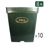 8号プラスチック角鉢 グリーン 10個セット 送料無料(北海道・沖縄・離島除く) 同梱不可 バラ鉢 ガーデニング 庭 花 植物 軽い 軽量 水はけ