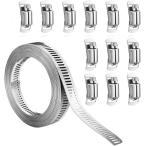 ホースバンド ステンレス ダクトバンド クランプ (シルバー, 10m , ファスナー 12個セット)