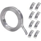 ホースバンド 8mm幅 ステンレス クランプ 自在バンド 長さ 4m 留め具 8個