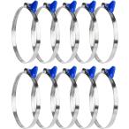 手締めホースバンド ダクト用 ホースクリップ ステンレス製 90-112mm対応 調節可能 8個入り 錆びない 強力固定 耐圧 (ブルー)