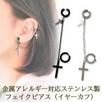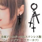イヤーカフ クロス フェイクピアス メンズ レディース アレルギー ステンレス フープ チェーン ノンホール ピアス穴不要 中折れ 黒 片耳 1個 男性 韓国