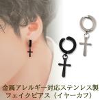 イヤーカフ メンズ かっこいい クロス 片耳 フェイクピアス ノンホール ピアス 穴不要 アレルギー対応 ステンレス 中折れ フープ 1個 男性 黒 イヤリング