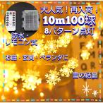 イルミネーションライト LED 雪形 10m 100球 電池式 リモコン付き 点灯8パターン クリスマス ガーランド スター 屋外 屋内