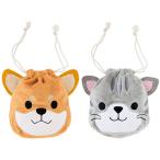 アニマル 巾着バッグ 柴犬 サバトラネコ 手ざわりが気持ちいいベロア生地でできています。 誕生日 お祝い 記念日 ぬいぐるみ キャラクター