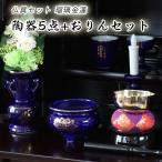 仏具 セット 瑠璃色 金蓮 陶器5点+おりんセット 香炉灰・マッチ付き ルリ色 モダン仏壇用 リン布団 仏壇 おりん ミニ 送料無料
