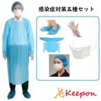 感染症対策五種セット(4個までメール便可) エプロン 使い捨て 水色 衛生用品 感染対策 感染予防 アーテック 防護服 マスク 感染対策