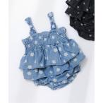 ベビー 「リンク」総柄肩リボンシャーリングベビーサロペット
