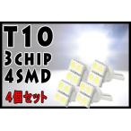 T10 3chip 4連 5050SMD仕様 4個セット/ポジション球・ナンバー灯・ルーム球などに使用可能/高品質・高照度