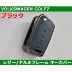 VW ゴルフ7/トゥーラン/ティグアン ブラックレザー アルミフレーム キーカバー GOLF7 / TOURAN