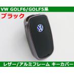 VW ゴルフ6/ゴルフ5/ティグアン ブラックレザー アルミフレーム キーカバー GOLF6 / GOLF5
