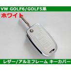VW ゴルフ6/ゴルフ5/ティグアン ホワイトレザー アルミフレーム キーカバー GOLF6 / GOLF5