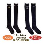 子供ニーハイソックス 2足組 19〜24cm ライン 刺しゅう ハイソックス ブラック ネイビー 46cm丈 靴下 女の子 メール便