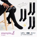 stample リボン 刺繍 ライン ニーハイソックス 70005 スタンプル 靴下 子供 通学 おしゃれ 女の子 可愛い