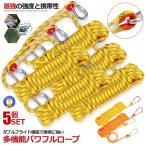 5個セット ロープ カラビナ付き 20m 厚み10mm 強撚 高密度 多用途 多機能 パワフル 園芸 洗濯 耐荷重2100kg 頑丈 アウトドア キャンプ 防災 KAKYORO