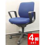 送料無料 地域限定 オフィスチェア コクヨ 4脚セット セディスタ 国産 ブルー 肘付き 布張り 中古