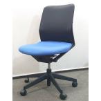 オフィスチェア キャスター付き ダークブルー キャスターチェア 肘なし 中古