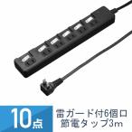 10点セット YAZAWA 雷ガード付 節電タップ 6個口 コード長3m 個別スイッチ付 ブラック H8KS663BK