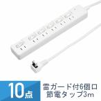 10点セット YAZAWA 雷ガード付 節電タップ 6個口 コード長3m 個別スイッチ付 ホワイト H8KS663WH