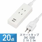 20点セット YAZAWA 2AC 2USB 2.1A 2.5m ホワイト Y024025WH2U