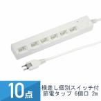 10点セット YAZAWA 横差し 個別スイッチ付 節電タップ 6個口 2m 白 Y02YBKS662WH