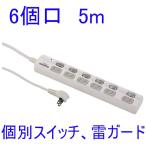 5m延長コード 節電タップ 6個口 5m ohm006932 雷ガード・個別スイッチ・シャッター・ブレーカー付