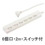 6個口・2m延長コード 節電タップ HS-TPK62W-22 雷ガード・個別スイッチ付 00-1577