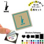サックス 名入れ文字入れステッカー4枚セット カラー 円 ハート 正方形 長方形 シール 多目的シール 吹奏楽 楽器 オーケストラ
