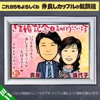 DF おしどり夫婦のディフォルメ似顔絵ポエム/結婚50周年のネームポエム入り似顔絵★金婚式 銀婚式 結婚記念日のお祝いプレゼント★両親似顔絵