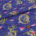 和柄コットン生地 雲海の龍(青) 10cm単位 切り売り