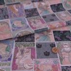 コットン生地 ミュシャ風ねこ柄(グレー系) 10cm単位 切り売り
