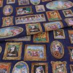コットン生地 猫たちの名画ギャラリー(ネイビー) 10cm単位 切り売り