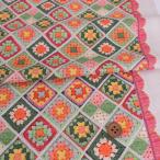 コットン生地 かぎ針編みのモチーフ柄(グリーンオレンジ) 10cm単位 切り売り