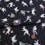 和柄コットン生地 鳥獣戯画風うさぎとかえる 10cm単位 切り売り